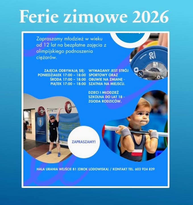 Zapraszamy na zajęcia sportowe dla młodzieży szkolnej. Zajęcia wprowadzają młodzież szkolną w technikę i zasady dwóch klasycznych bojów olimpijskich: rwania i podrzutu. Program obejmuje naukę prawidłowych wzorców ruchowych, pracę nad mobilnością, koordynacją i siłą ogólną, a także bezpieczne korzystanie ze sztangi i sprzętu treningowego. Uczestnicy wykonują ćwiczenia techniczne z lekkim obciążeniem, uczą się stabilizacji ciała, kontroli ruchu oraz podstawowych zasad bezpieczeństwa obowiązujących w podnoszeniu ciężarów. Zajęcia rozwijają sprawność ogólną, pewność siebie i świadomość własnego ciała, a jednocześnie wprowadzają w świat sportów siłowych w sposób bezpieczny i dostosowany do wieku.